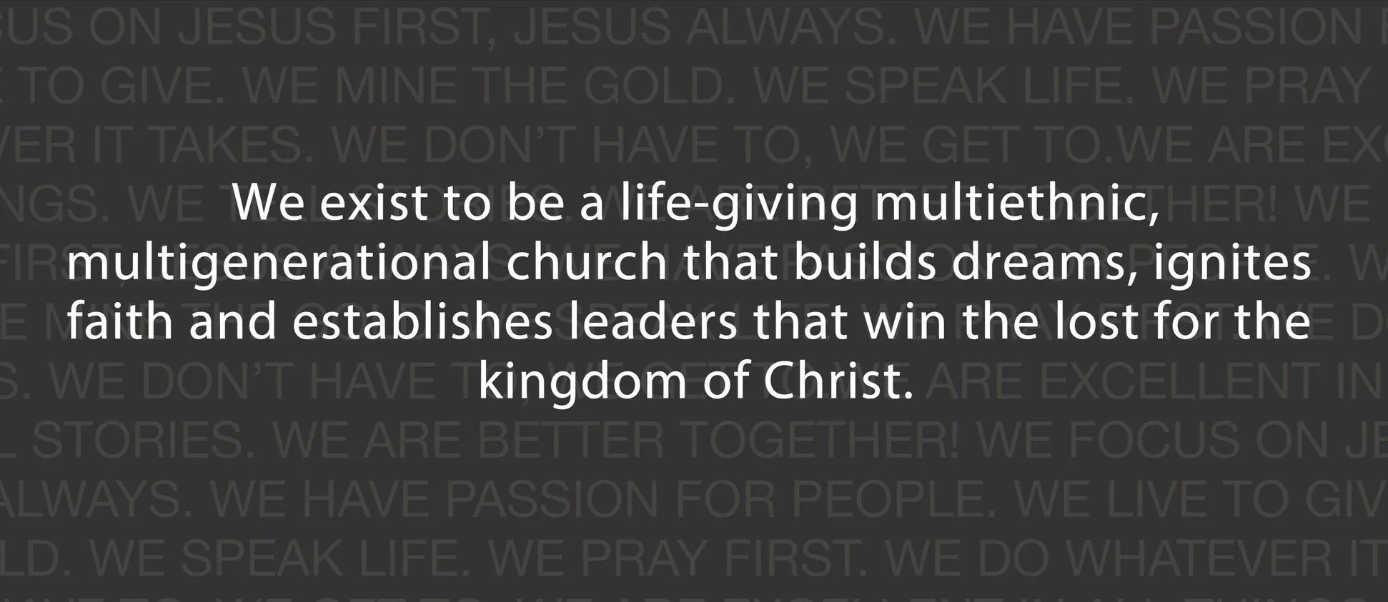 CITY PLACE CHURCH EXISTS TO BE A LIFE-GIVING CHURCH THAT BUILDS DREAMS, IGNITES FAITH AND ESTABLISHES LEADERS THAT WIN THE LOST FOR THE KINGDOM OF CHRIST.